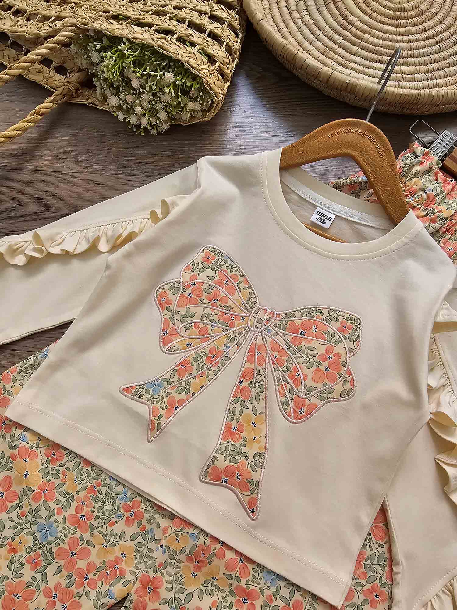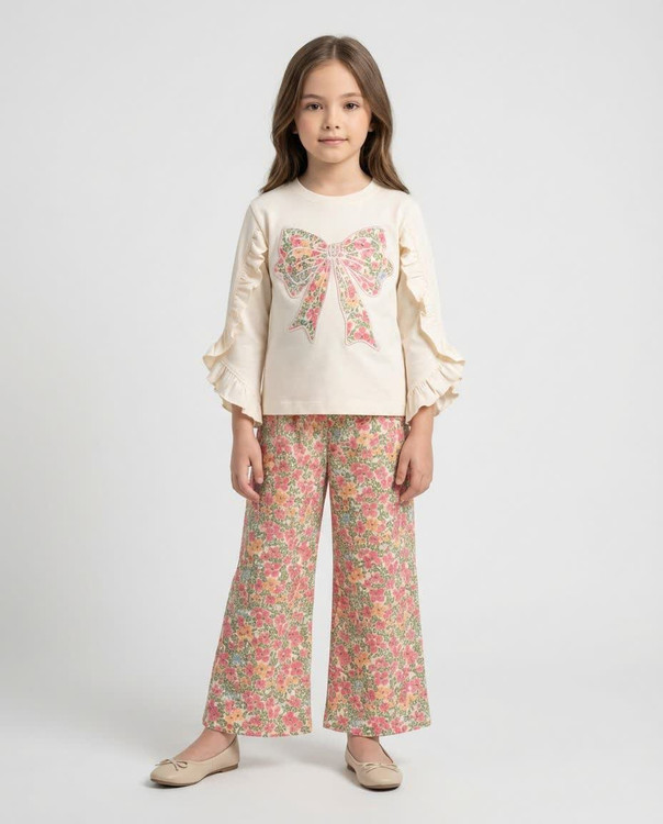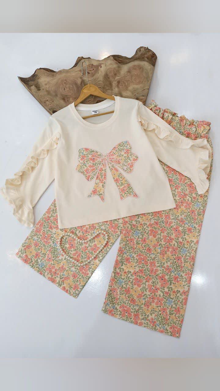 بلوز و شلوار دخترانه طرح پاپیون آستین فرشته 4 تا 13 سال