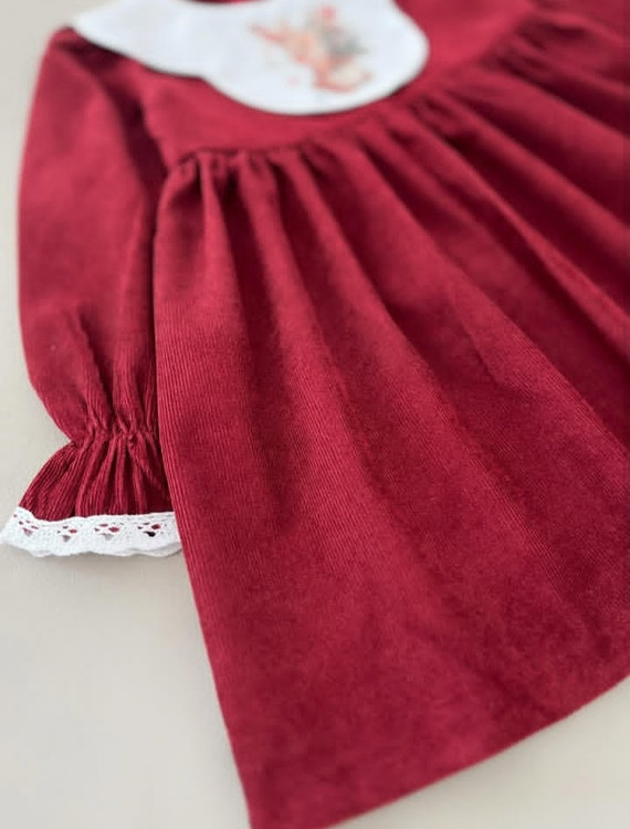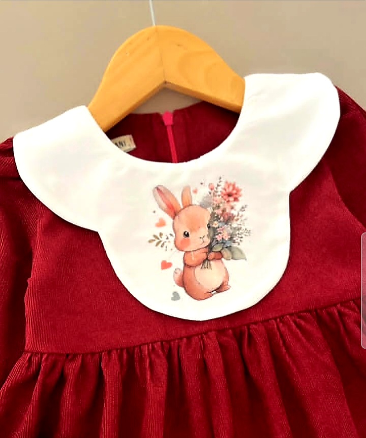 پیراهن دخترانه مخمل کبریتی رنگ گیلاسی 3 تا 9 سال