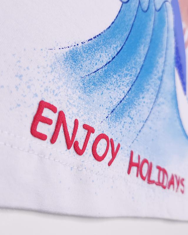 تیشرت سفید بچگانه 3 تا 6 سال طرح خرچنگ موج سوار