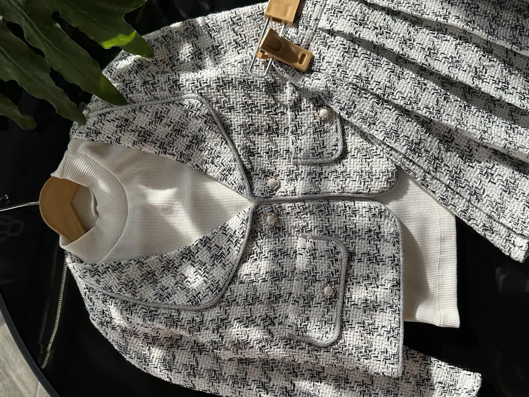 ست سه تیکه کت و دامن کتان کنفی دخترانه ۳ تا ۱۰ سال