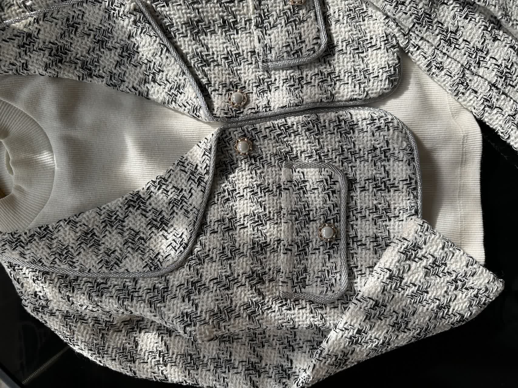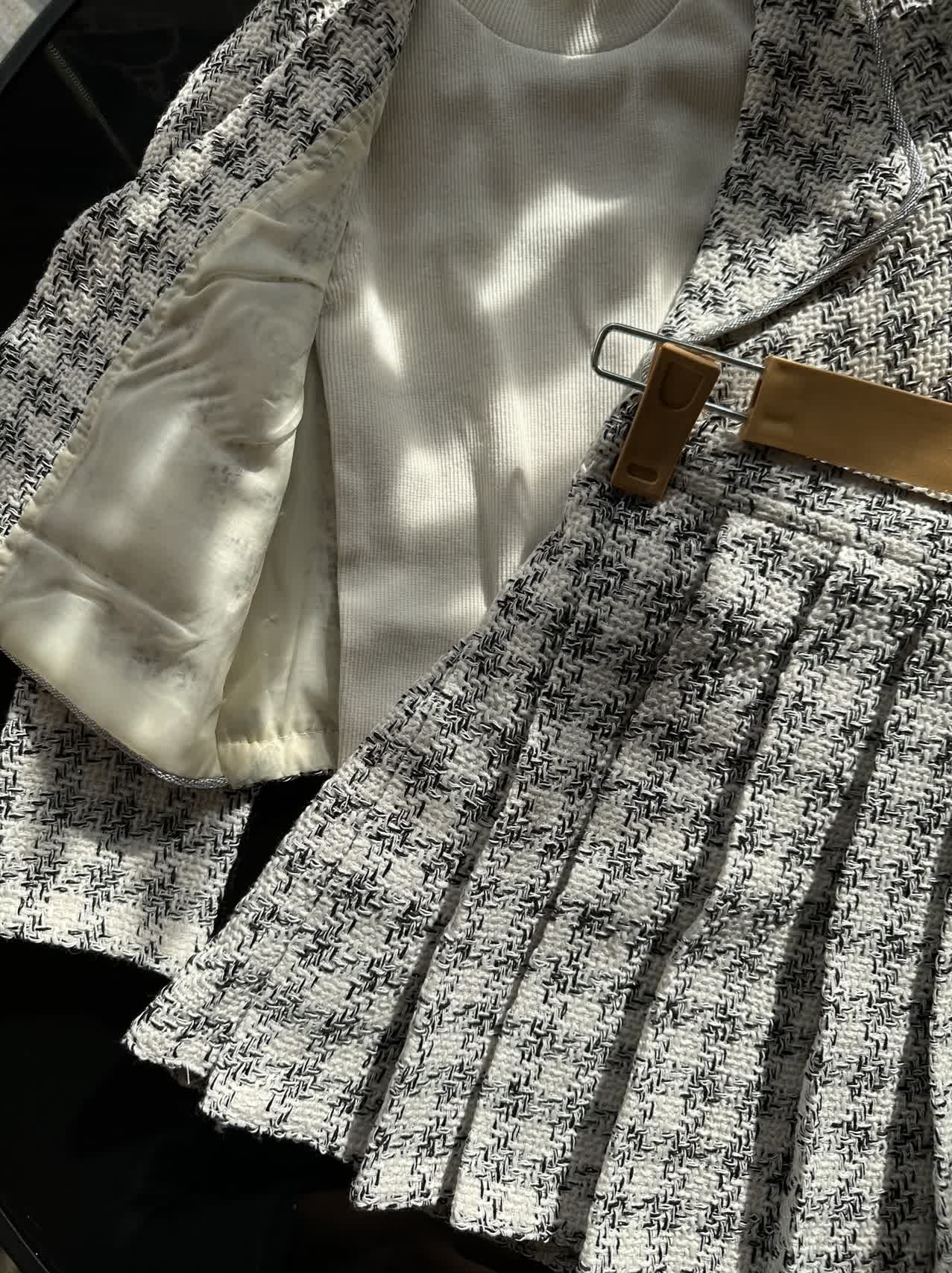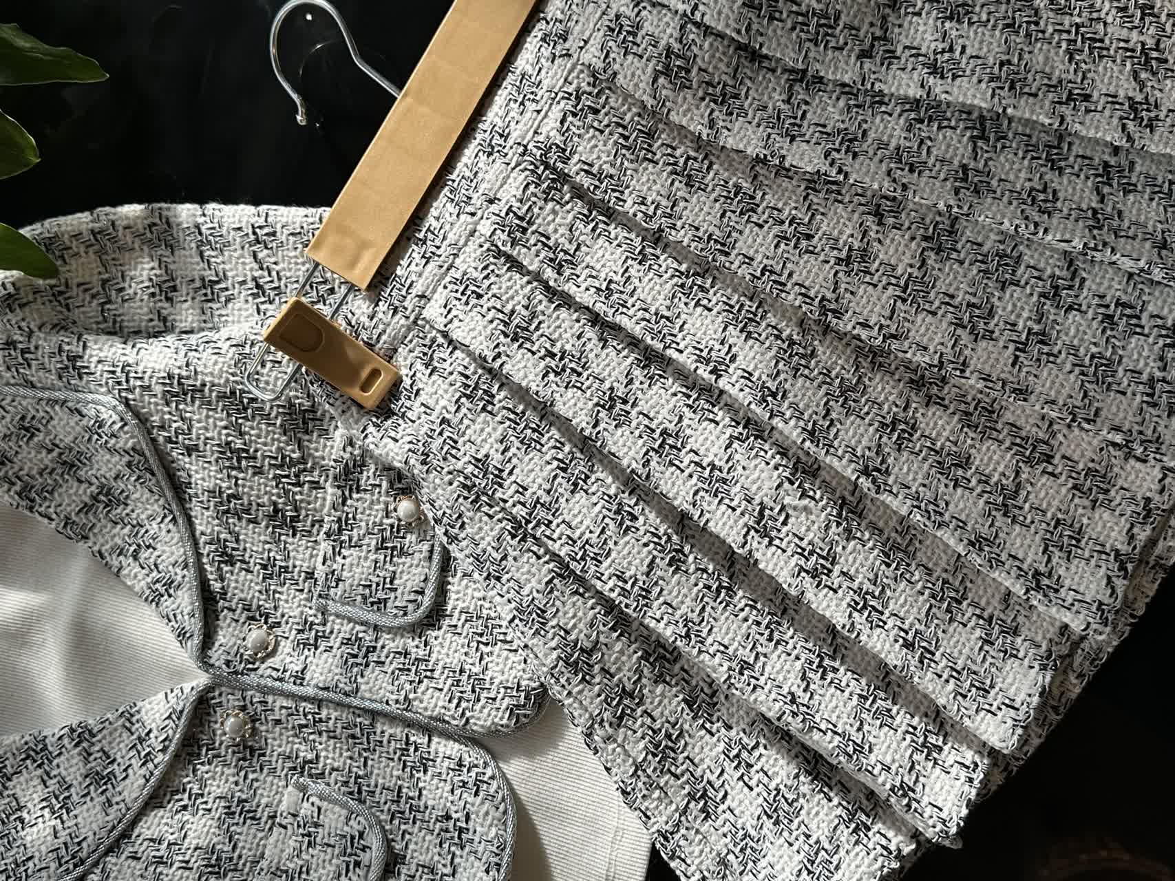 کت آستری خورده و آستین ها لایه حریر - پشت دامن کش خورده و جلوی دامن پلیسه