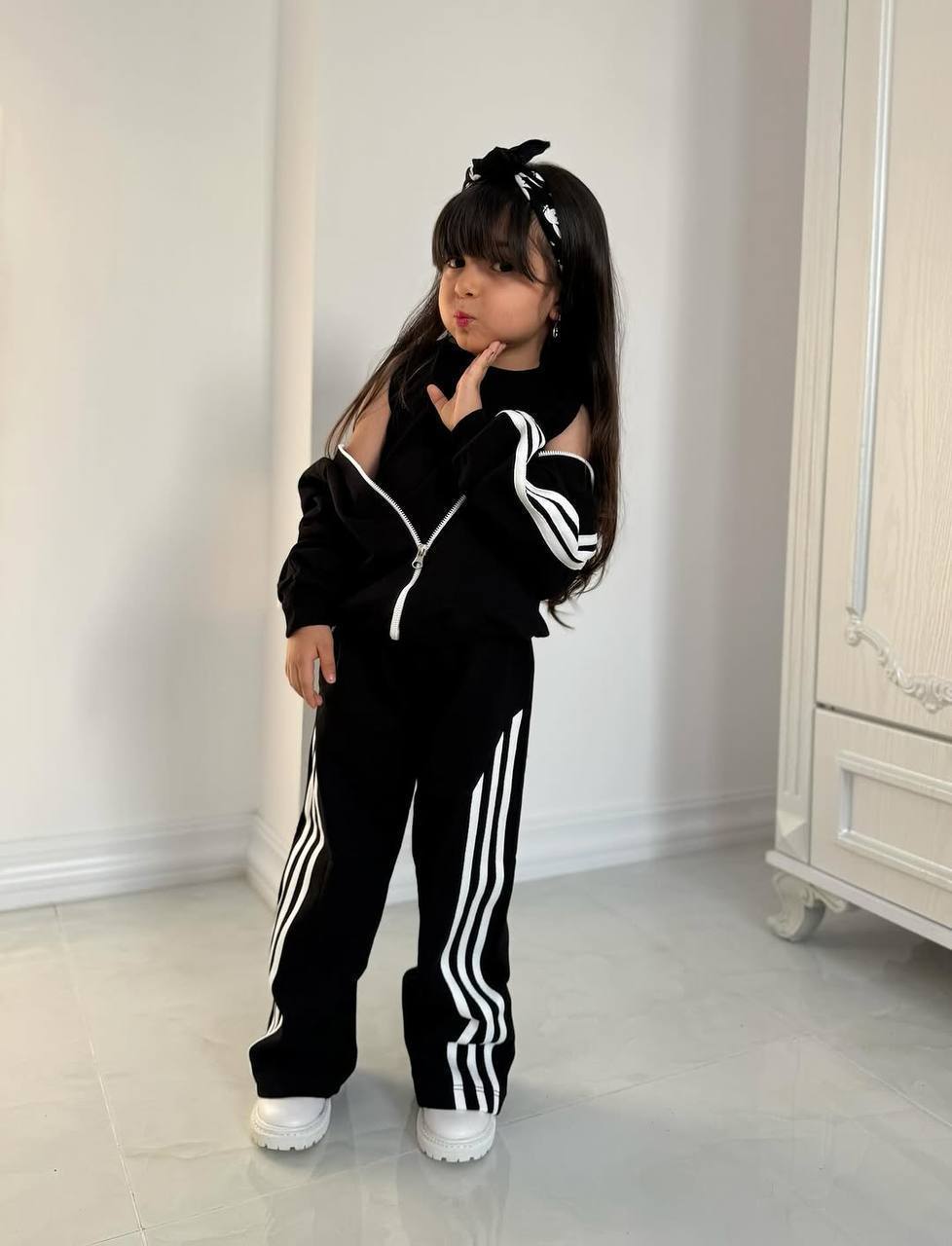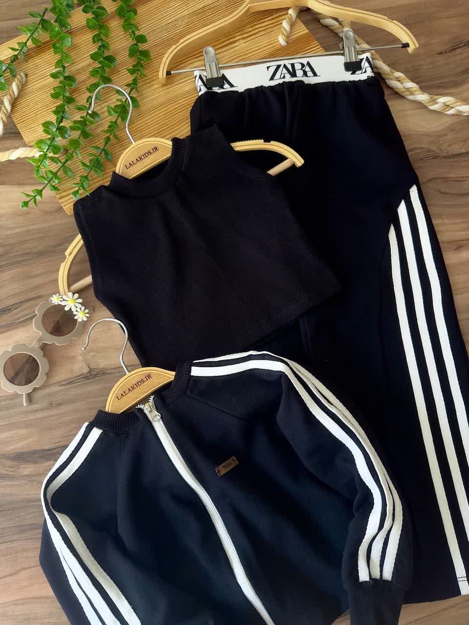 ست سه تیکه سویشرت شلوار دورس مشکی دخترانه ۳ تا ۱۲ سال