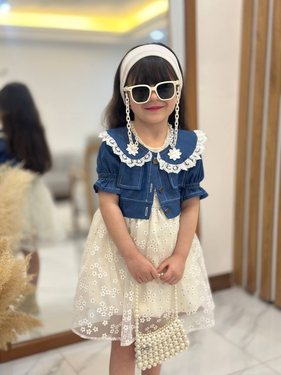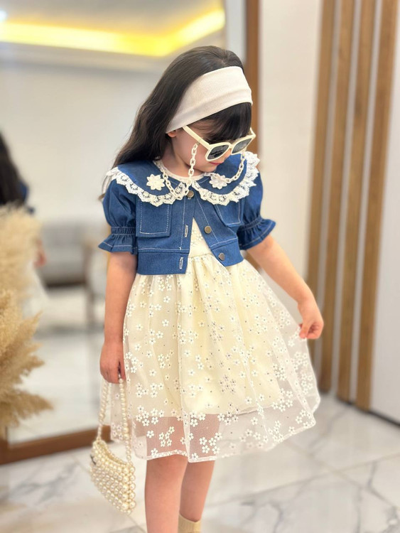 ست کت جین و سارافون دانتل دخترانه 2 تا 9 سال
