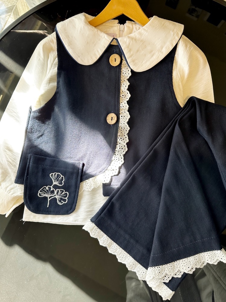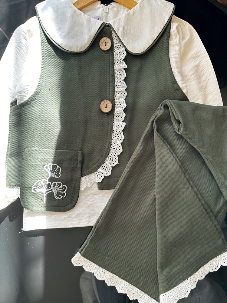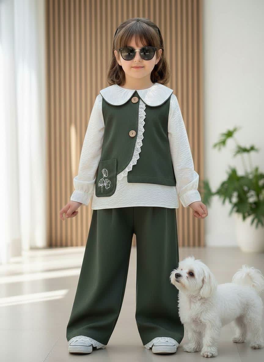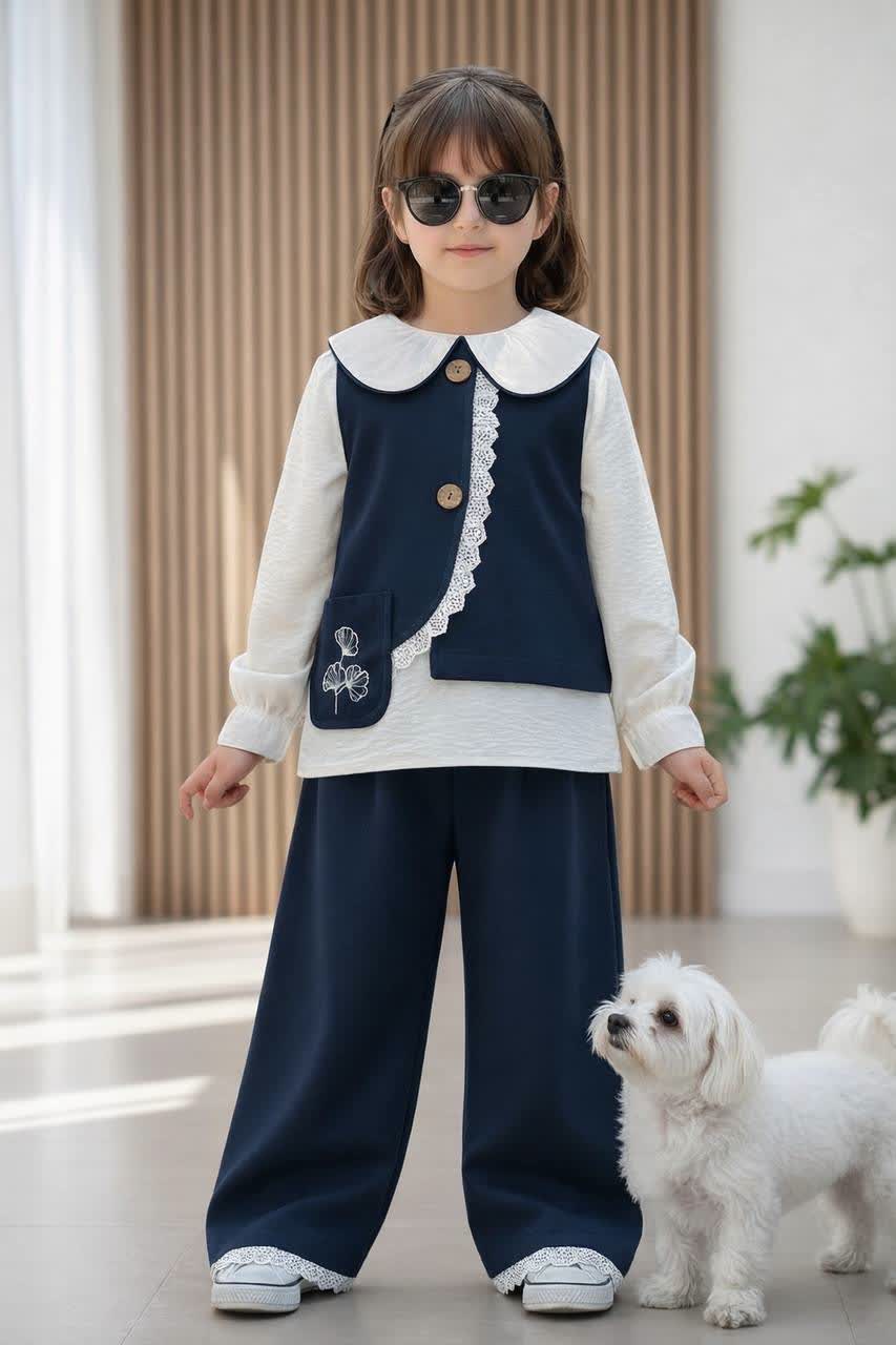 ست سه تیکه وست و شلوار کتان دخترانه ۳ تا ۱۰ سال رنگبندی