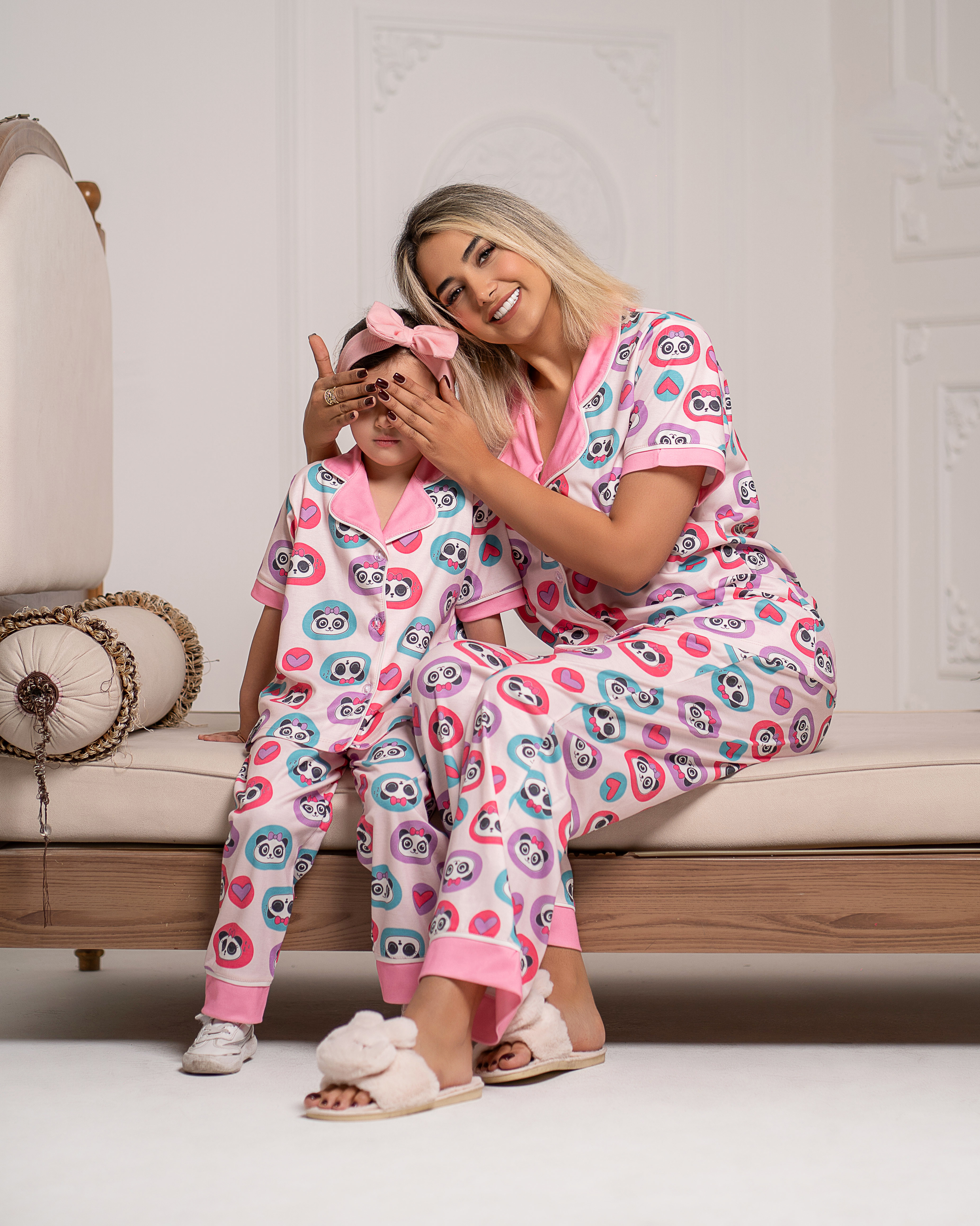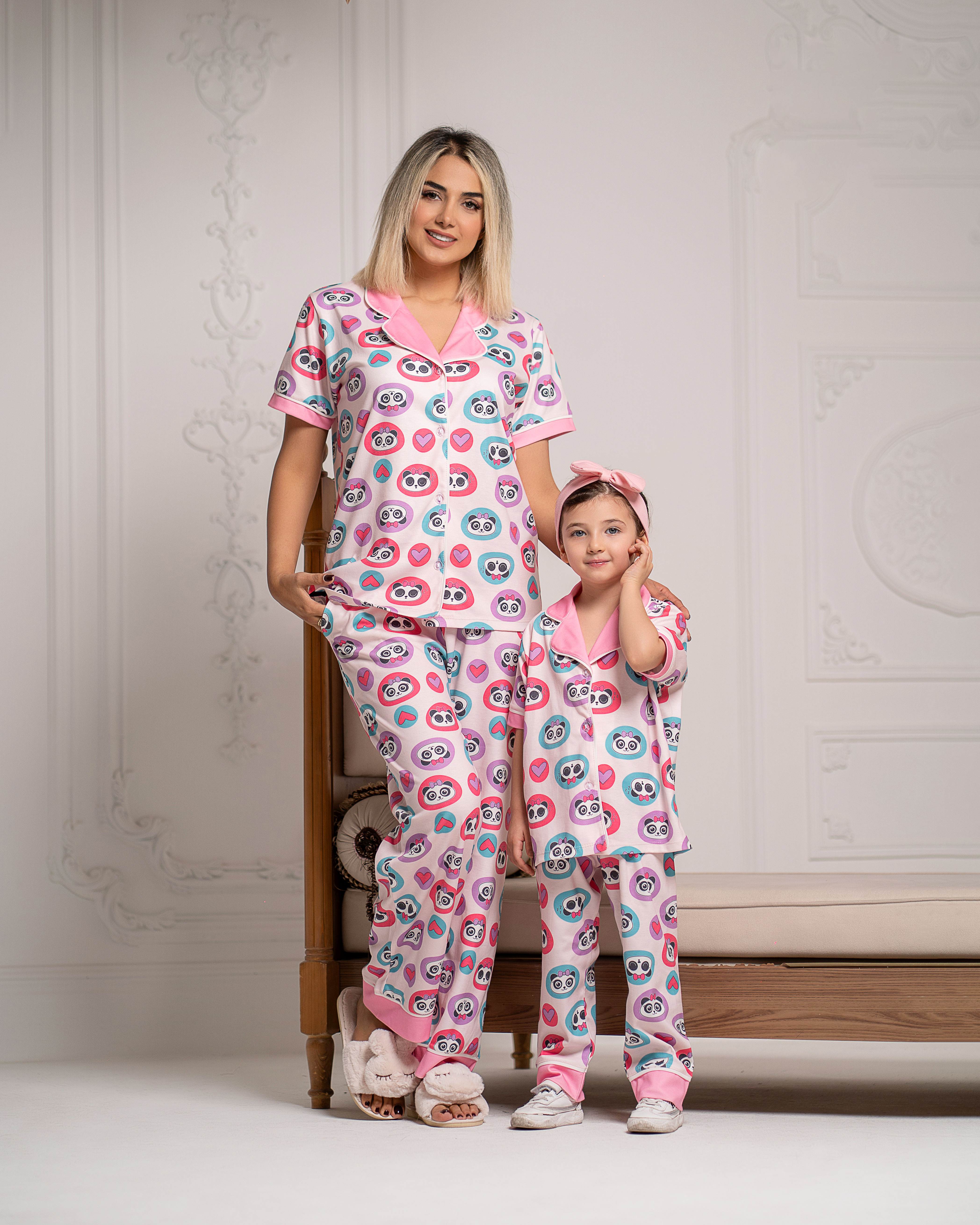 ست بلوز و شلوار راحتی دکمه دار دخترانه طرح پاندا از ۲ سال تا بزرگسال